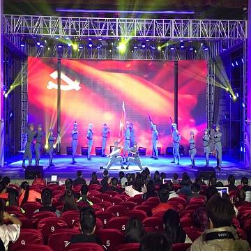 我院派出副院长马学智为领队、段永斌老师为教练组队参加了此次比赛。开学初进行了队员选拔,选拔了以武术表演班学生为主的陈则豫、周漪纹和王嘉恒等15名同学,利用中午、晚上和休息日,进行了为期二个多月的赛前集训和排练。为纪念中国工农红军长征胜利80周年,编排了以长征为主题的舞台剧《红色追忆》,将武术元素结合长征这段历史,将红军长征路上的不畏艰难的精神再现舞台;编排了以太极为主要元素的《太极图》,包含了太极拳、太极剑、太极扇等太极项目为,并融入中国传统文化八卦周易等,并以灯光、音乐为辅助,为观众呈现出了一台精彩纷呈、内涵深厚、耳目一新的武术表演。我院学生在比赛中发挥出色、表演到位、配合紧密,受到了裁判、嘉宾和观众的一致好评,两个节目均获得了金奖,线上娱乐城平台 代表队获得武德风尚奖运动队,段永斌老师被评为优秀教练员,为我校赢得了荣誉。